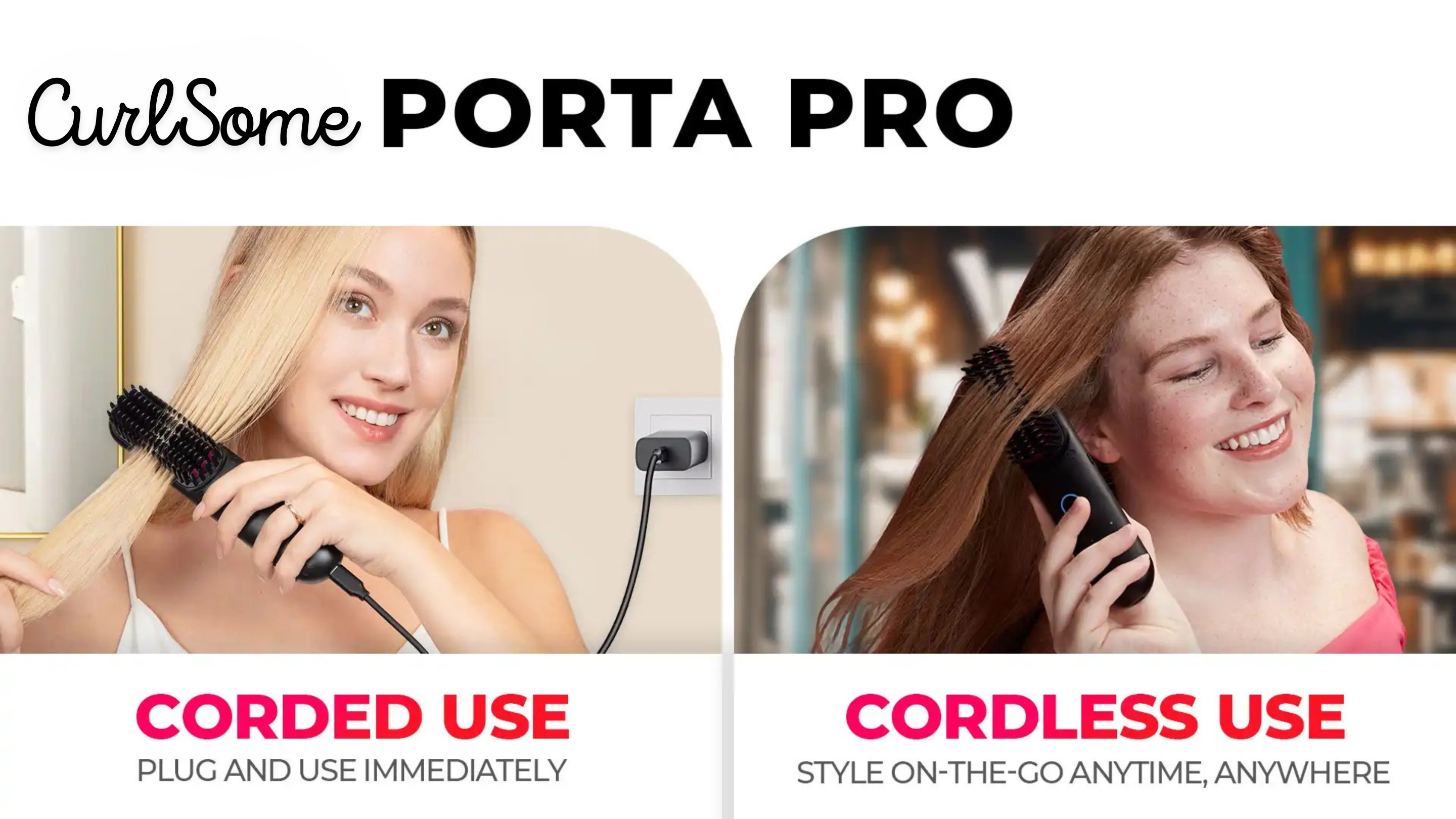 CURLSOME™ PORTA PRO Portable Hair Straightener Brush. The upgraded plug-use cordless hair styler brush delivers the performance of a full-size straightener for all hair types.